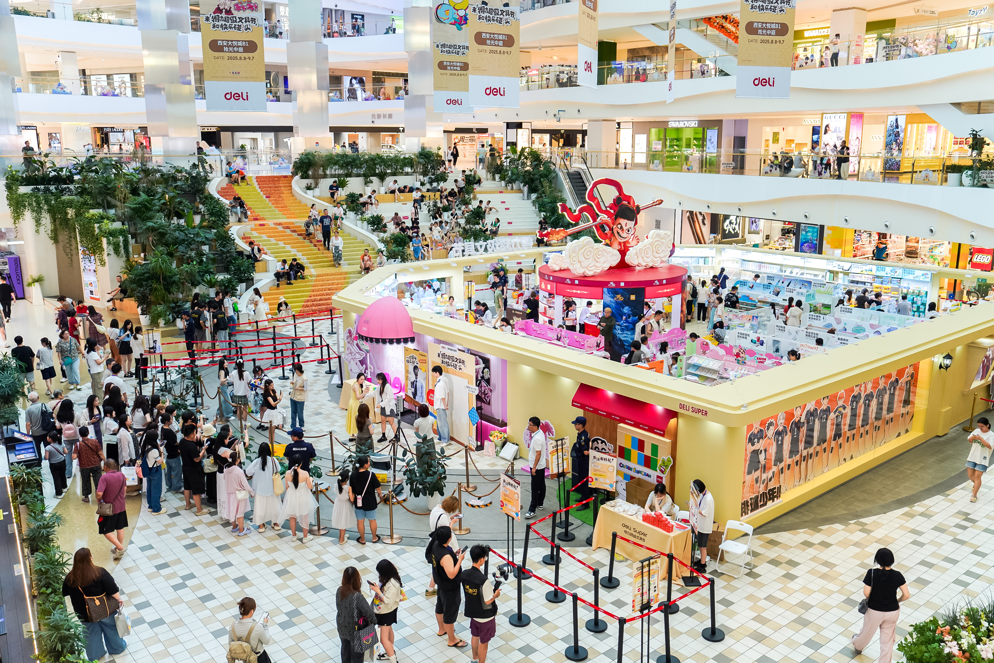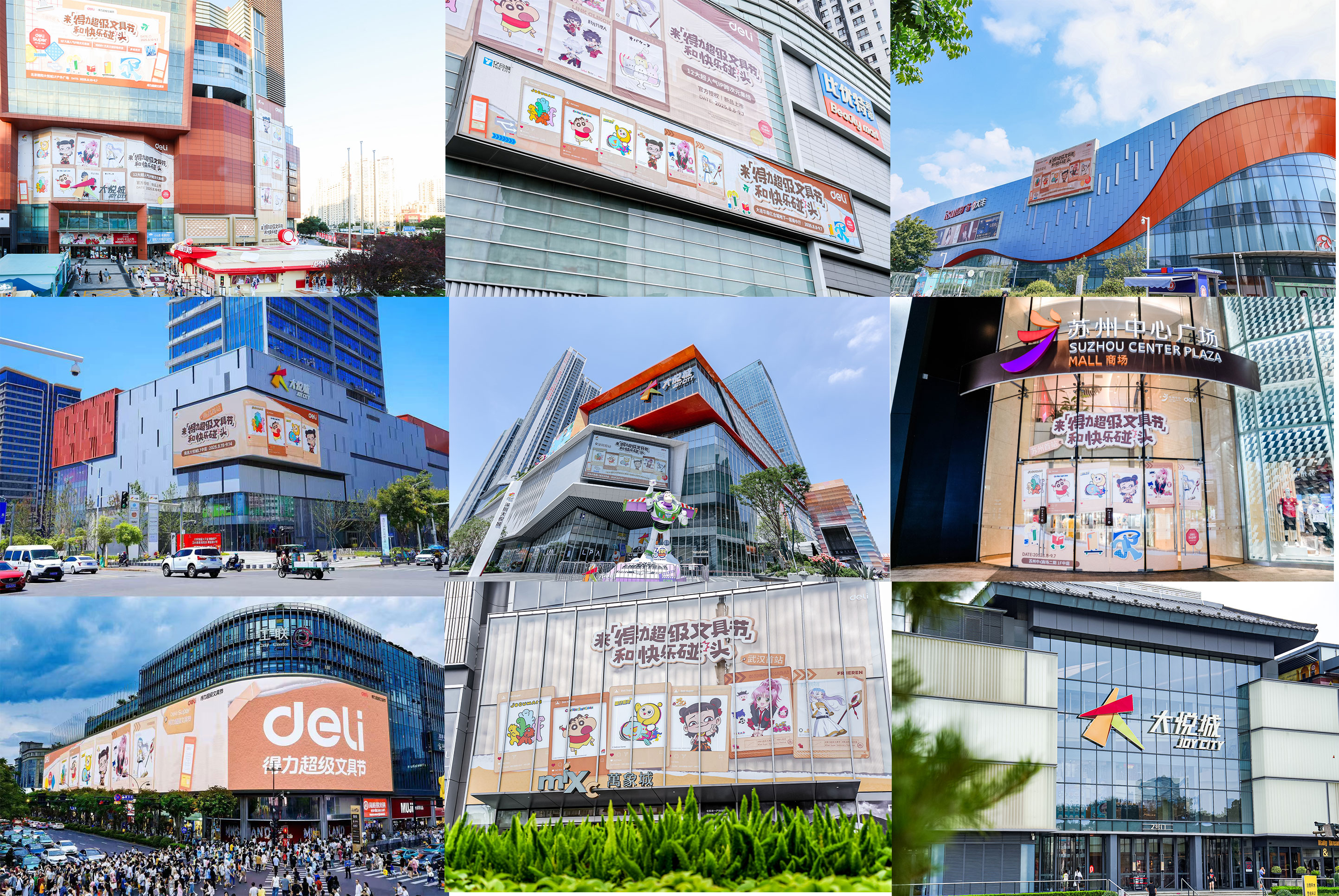 城市地标一起加入狂欢,北京三里屯、上海南京东路、西安小寨国贸、杭州西湖天幕等地标大屏同时上演视觉盛宴;上海与杭州上空掠过的哪吒飞艇,掀起全民打卡热潮;还有地铁得力超级文具节专列,让通勤亦可享沉浸式体验。