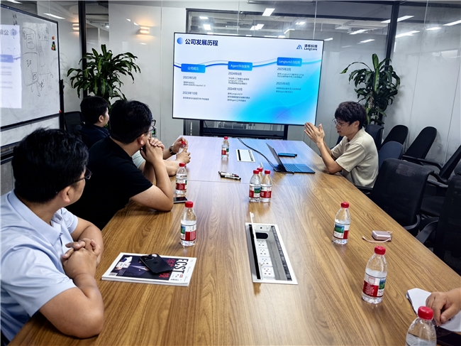 随后,参访团前往语核科技。语核科技创始人兼CEO翟星吉接待调研团队,并就企业核心业务与发展情况作了详细介绍。语核科技致力于为各行各业提供开箱即用的智能制造方案,在企业中精准部署Agent数字员工。