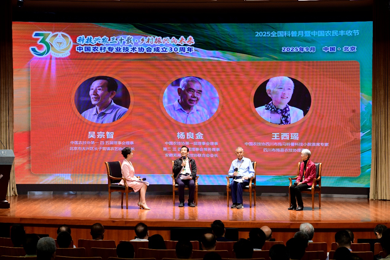 一部以“破壁·成长”为主题的宣传片,生动展现了农技协30年发展足迹,片中出现的3位长期奋战在一线的农技协代表也来到现场,分享了他们不断创新、服务“三农”的实践体会。北京市大兴区长子营镇农艺协会会长吴宗智谈到,农技协必须贴近农户需求,持续优化服务机制;安徽芜湖市农技协联合会会长杨良金四十年奔走贫困地区,累计开展农技培训超六千场,将复杂农艺简化为农民易懂的“顺口溜”,选育品种推广超两千万亩;四川布拖马铃薯科技小院首席专家王西瑶带领团队扎根大凉山,推动建成现代化种薯繁育中心,助农年增产值近五亿元。他们的故事折射出农技协在坚守为农服务初心的同时,不断探索科技小院、乡土人才培养等创新模式,增强服务实效。