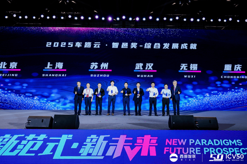 三是揭晓“2025车路云”三项大奖——聚焦“综合发展成就”的智邑奖,聚焦“场景开拓标杆”的金景奖,聚焦“商用先锋”的奇点奖,全国共有11个城市、10家企业摘得奖项。