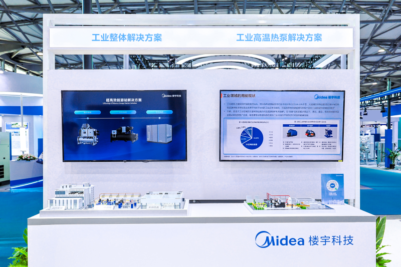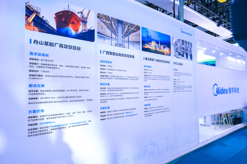 本次展会上,美的楼宇科技还带来了工业高温热泵解决方案、工业整体解决方案和全生命周期高效空压系统低碳解决方案及多个应用案例。