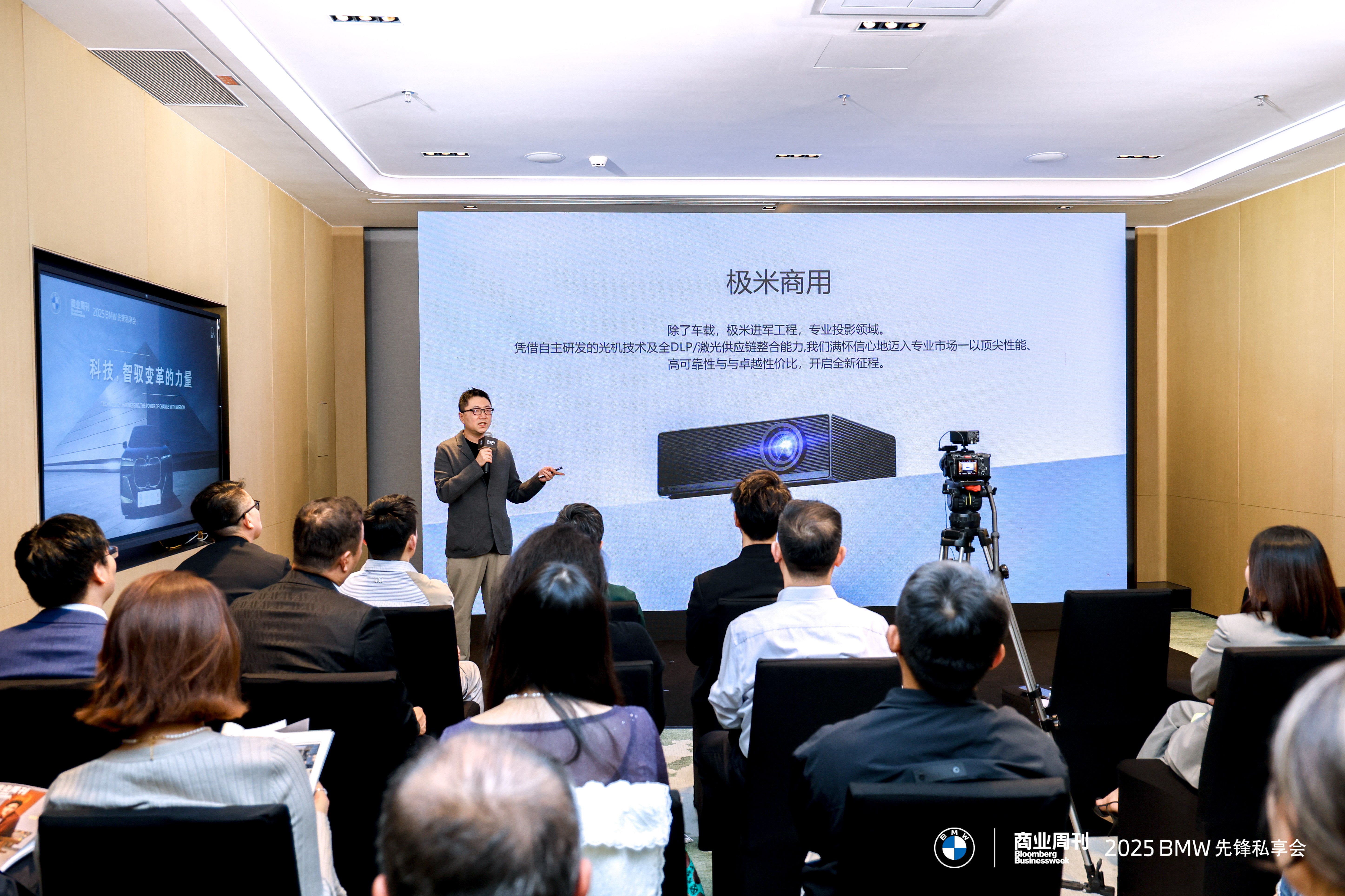 在 BMW 先锋私享会的主题分享环节,我们特邀极米科技创始人、董事长钟波亲临现场。作为智能投影领域的领军者、科技改变生活的践行者,他带领极米科技持续推动显示技术的创新与普及,将前沿光影技术融入万千家庭场景,让光影成为联结亲情的温情纽带,并不断推动行业标准的演进。